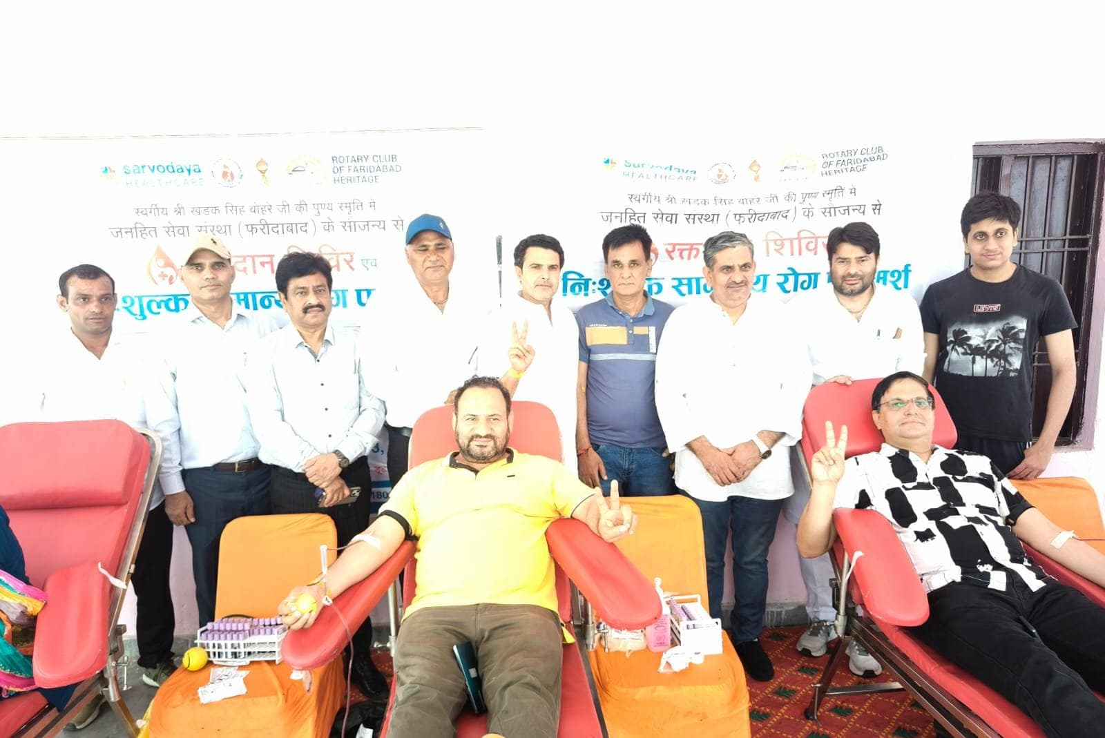 फरीदाबाद | सामाजिक संस्था जनहित सेवा संस्था फरीदाबाद ने हर वर्ष की भांति इस वर्ष भी स्वर्गीय खड़क सिंह बोहरे की पुण्य तिथि पर गांव डीग की मंदिर वाली पंचायत वाटिका में विशाल रक्तदान शिविर का आयोजन रोटरी क्लब हेरिटेज व सर्वोदय अस्पताल के सहयोग से किया। शिविर का शुभारंभ मुख्य अतिथि डीप्टी सीएमओ डॉ राजेश श्योकंद, डीप्टी सीएमओ डॉ हरजिंदर, रोटरी क्लब हेरिटेज के सचिव कुलदीप सेठी, समाजसेवी अमरदीप डागर ने अपने कर कमलों से रिबन काट कर शुभारंभ किया। इस अवसर पर डाक्टर राजेश श्योकंद व डाक्टर हरजिंदर ने कहा कि रक्तदान कर हम किसी जरूरतमंद की जान बचा सकते है। रोटरी से कुलदीप सेठी ने कहा कि रक्तदान जरुर करना चाहिए। इससे स्वास्थ्य भी ठीक रहता है। संस्था के प्रधान संतसिहं हुड्डा ने कहा कि रक्तदान महादान है। समाजसेवी अमरदीप डागर ने इस अवसर पर रक्तवीरो को सम्मानित करते हुए कहा कि नर सेवा ही नारायण सेवा है। रक्तदान करने से मन को बहुत खुशी मिलती है। इस अवसर सभी अतिथियों का संस्था के अध्यक्ष सन्तसिहं हुड्डा व महासचिव सुभाष गहलोत ने संस्था की टीम व गांव की सरदारी के साथ पगड़ी बांधकर ओर पुष्प गुच्छ भेंट कर अभिनंदन व स्वागत किया। शिविर के मुख्य संयोजक संस्था के महासचिव सुभाष गहलोत ने रक्तवीरो का आभार व्यक्त करते हुए बताया कि 71 रक्तवीरो ने रक्तदान किया है। यह मुहिम लगातार जारी रहेगी। शिविर में मुख्य रूप से संस्था के मुख्य सचिव देविचरण वैष्णव, कोषाध्यक्ष लोकेश शास्त्री, सचिव विक्रम तेवतिया, सुंदर तेवतिया , जयवीर यादव सरपंच, धर्मवीर यादव नंबरदार , विक्रम नंबरदार , भीमसिहं, पूर्व सरपंच गिर्राज , तेजपाल यादव, काशी, गोविंदराम , चरणसिंह, इंद्रसिंह, मास्टर सीताराम, डां प्रेमचंद योगाचार्य, मास्टर संजय शर्मा, रोहित कुमार, विकास , सुनील चौधरी, सुधीर गौतम , जितेन्द्र सिंह , धर्मेन्द्र शर्मा, गजेन्द्र गहलोत, सुंदर गहलोत, पुरुषोत्तम सर्वोदय से राकेश त्यागी ने विशेष सहयोग किया ओर रक्तवीरो का जनहित सेवा संस्था की टीम व गांव के गणमान्य लोगों ने सम्मानित कर हौसला अफजाई की।