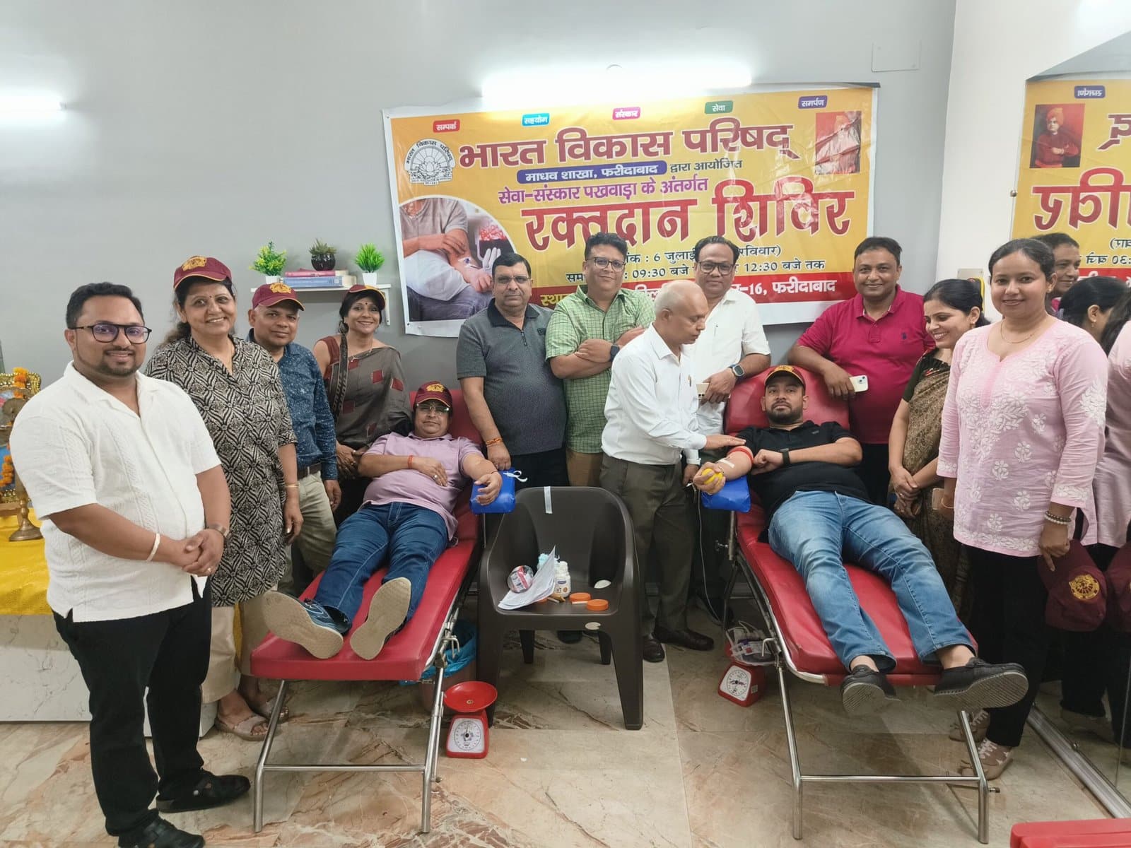 फरीदाबाद। रक्तदान महादान है इसी से प्रोत्साहित होकर भारत विकास परिषद् समय-समय पर रक्तदान शिविरों का आयोजन करती रहती है। इसी कड़ी को आगे बढ़ाते हुए भारत विकास परिषद् माधव शाखा ने सेवा संस्कार पखवाड़ा के तहत सेक्टर-16 स्थित शत:आयु मल्टीस्पेशलिस्ट क्लीनिक के साथ संयुक्त रूप से रक्तदान शिविर का आयोजन किया। रक्तदान शिविर का विधिवत उद्घाटन विनय गोयल अध्यक्ष,प्रतिमा गर्ग सचिव,नंदकिशोर अग्रवाल कोषाध्यक्ष,प्रियंका सिनहा,मंजू यादव,राजकुमार अग्रवाल,डॉ0 ललित अग्रवाल,अजय अग्रवाल और संजय मित्तल ने दीप प्रज्जवलित करके किया। इस अवसर पर पहली बार रक्त्दान करने वाले रक्तवीर नरेन्द्र बंसल वरिष्ठ सदस्य,हेमंत गुप्ता,विनय गोयल,श्याम बंसल,हार्दिक केडिया की सभी ने तारीफ का और हर तीन महीनें में उन्हें रक्तदान करने के लिए प्रोत्साहित किया। डॉ.शत:आयु ने रक्तदाताओं का हौंसला बढ़ाते हुए कहा कि रक्दान से बड़ा कोई दान नहीं है क्योकि रक्त की एक एक बूंद किसी के अनमोल जीवन को बचा सकती है। उन्होनें कहा कि यह एक पुण्य का कार्य है जिसमें सभी को अधिक से अधिक रक्तदान करना चाहिए। डॉ. ललित अग्रवाल ने सभी संस्थाओं के योगदान की सराहना की एवं आगे भी ऐसे शिविर लगाने के लिए प्रोत्साहित किया व कहा कि ऐसे कार्यों के लिए उनकी हमेशा भागीदारी रहेगी। इस मौके पर इस शिविर में 25 लोगों की एचबी-1सी,25 लोगों की ईसीजी व 30 लोगों की अन्य स्वास्थय संबधी जांच की गई।