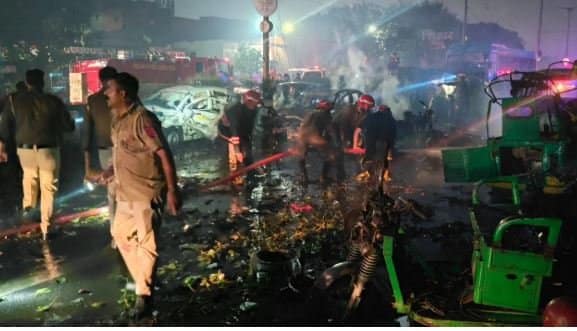 नई दिल्ली। सोमवार शाम लाल किला मेट्रो स्टेशन के गेट नंबर 1 के पास हुए एक शक्तिशाली विस्फोट के बाद मध्य दिल्ली में अफरा-तफरी मच गई। इस विस्फोट में कम से कम 10 लोगों की मौत हो गई और कई अन्य 20 गंभीर रूप से घायल हो गए। बताया जा रहा है कि यह विस्फोट एक कार से हुआ था, जिससे भीषण आग लग गई जो आस-पास के वाहनों तक फैल गई और उअन्य वाहनों को भी अपनी चपेट में ले लिया। घटनास्थल में लोग बपने बचाव के लिए इध उधर भागते हुए दिखाई दिए। दिल्ली और पड़ोसी उत्तर प्रदेश तथा मुंबई में हाई अलर्ट जारी कर दिया गया है। जैसा कि ज्ञात हो आज दिल्ली से सटे हरियाणा प्रदेश के धौज में काफी मात्रा में विस्फोटक सामग्री पाई गई।
