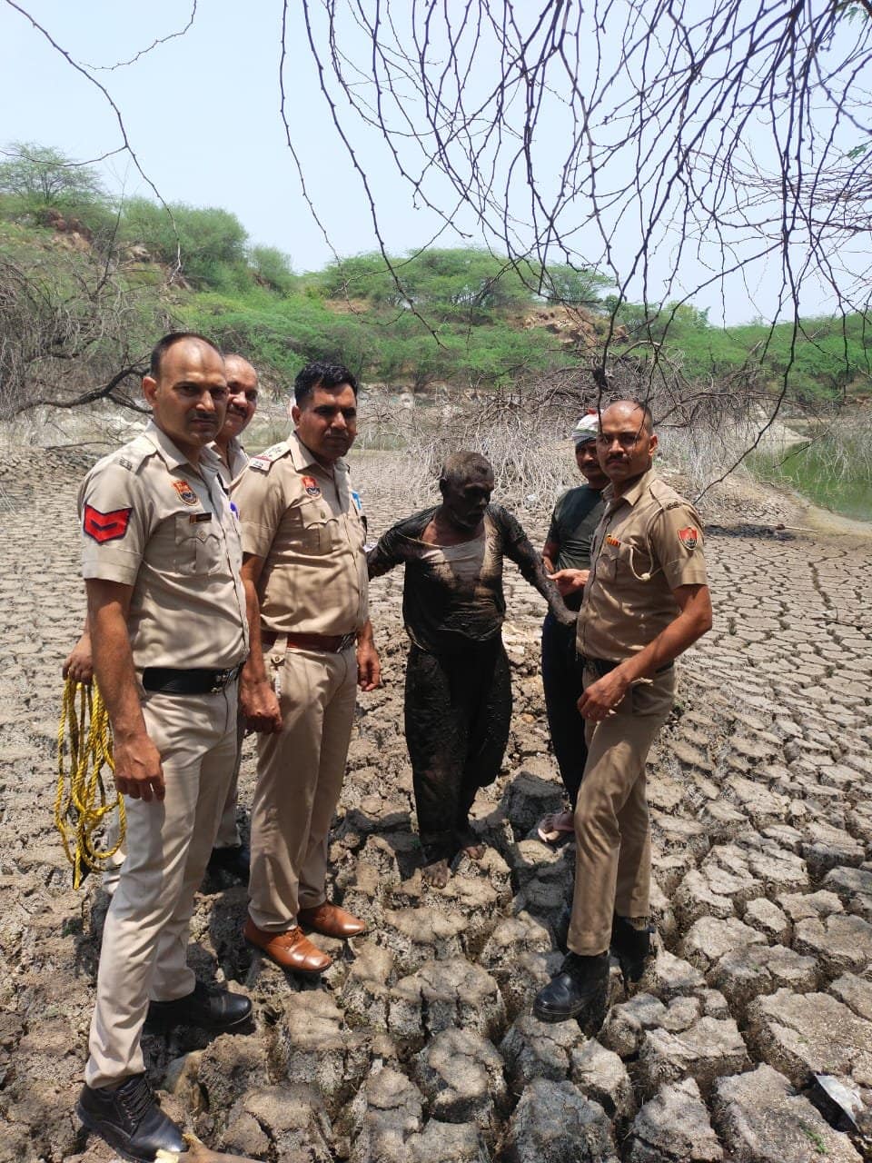 दलदल में फंसा हुआ था बुजुर्ग, थाना सूरजकुंड की टीम ने किया रेस्क्यू, 21 मई से था घर से लापता