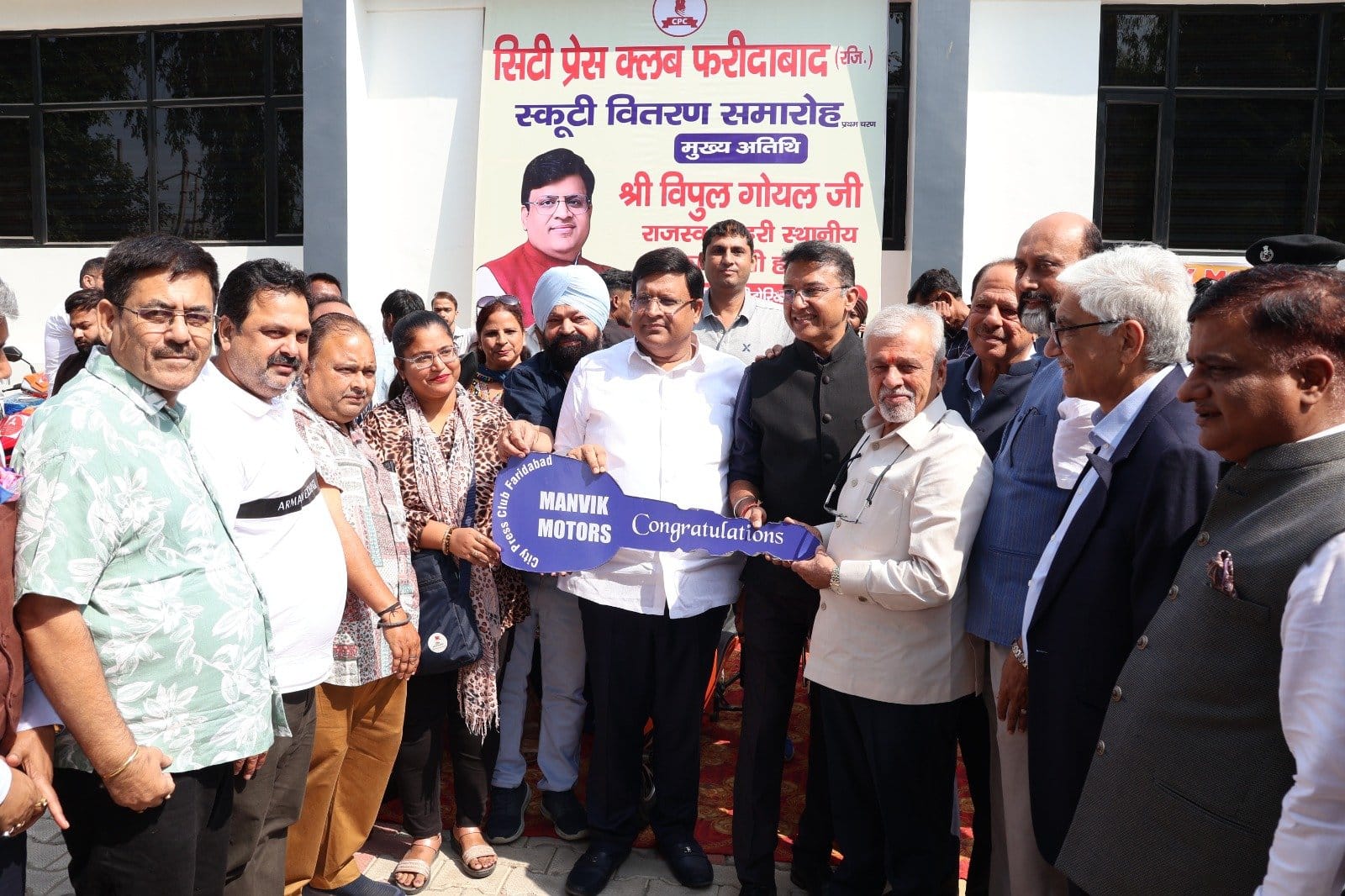 फरीदाबाद, अक्टूबर। सिटी प्रेस क्लब द्वारा आयोजित ‘ग्रीन फरीदाबाद क्लीन फरीदाबाद’ अभियान के तहत क्लब के सदस्यों को एफआईए सभागार में स्कूटी वितरण किया गया। इस अवसर पर हरियाणा के कैबिनेट मंत्री विपुल गोयल और मुख्यमंत्री हरियाणा के मीडिया सलाहकार राजीव जेटली मुख्य अतिथि के रूप में उपस्थित रहे। कार्यक्रम की शुरुआत स्वर्गीय शिव कुमार ओझा को श्रद्धांजलि अर्पित कर की गई।