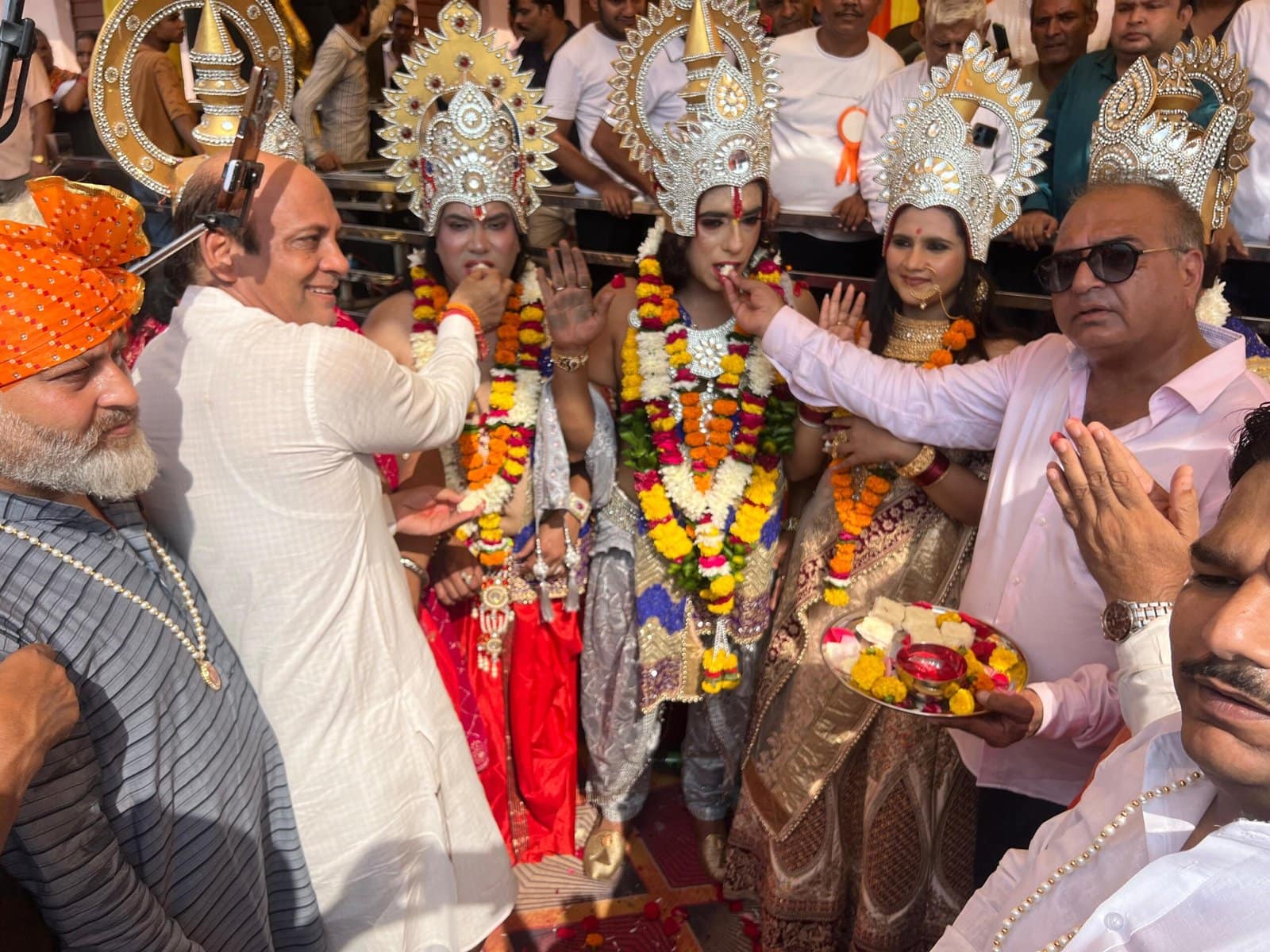 फरीदाबाद। सिद्धपीठ श्री हनुमान मंदिर मार्किट नंबर एक और पंजाबी सभा फरीदाबाद के संयुक्त तत्वाधान में आयोजित दशहरा पर्व के तहत आज राम-भरत मिलाप कार्यक्रम का भव्य आयोजन किया गया। इस दौरान एक विशाल और भव्य शोभायात्रा निकाली गई, जोकि मंदिर प्रांगण से शुरु होकर दशहरा मैदान पहुंची, इस दौरान भगवान श्रीराम और भरत की वेशभूषा धारण कलाकारों को देख लोग भावविभोर हो गए। इस शोभायात्रा का शुभारंभ बडखल के पूर्व विधायक चंद्र भाटिया व् रोहित भाटिया ने किया तथा राम भरत मिलाप में राम जी तिलक भटकल विधायक धनेश अदलक्खा ने किया। उन्होंने दशहरा पर्व के सफल आयोजन पर सिद्धपीठ श्री हनुमान मंदिर और पंजाबी सभा सहित अन्य सभाओं का आभार जताते हुए कहा कि दशहरा पर्व भाईचारे व एकता का प्रतीक होता है और इस बार यह पर्व फरीदाबाद में धूमधाम से मनाया गया। उन्होंने कहा कि अधर्म चाहे कितना ही बडा क्यों न हो, लेकिन जीत हमेशा धर्म की होती है। इससे पहले प्रधान राजेश भाटिया व राजकुमार वोहरा ने विधायक धनेश अदलखा व पूर्व विधायक चंद्र भाटिया का फूल मालाओं एवं स्मृति चिन्ह भेंट कर स्वागत किया। 75वें दशहरा पर्व के सफलता पूर्वक पूर्ण होने पर प्रधान राजेश भाटिया व राजकुमार वोहरा ने केंद्रीय राज्यमंत्री कृष्णपाल गुर्जर, विधायक धनेश अदलखा, पूर्व विधायक चंद्र भाटिया सहित शासन प्रशासन व पुलिस का धन्यवाद जताया और उम्मीद जताई कि भविष्य में भी उन्हें ऐसा सहयोग मिलता रहेगा। प्रधान राजेश भाटिया ने बताया कि आज निकाली गई शोभायात्रा में न्यू खुशरंग दशहरा क्लब तीरथ कपूर, बजरंग दशहरा कमेटी, शक्ति सेवा दल प्रधान मोहनलाल अरोड़ा, सिद्ध पीठ हनुमान मंदिर 1.बी ब्लॉक प्रधान भूपेंद्र कुमार, सिद्धपीठ श्री माता वैष्णो देवी मंदिर प्रधान जगदीश भाटिया, दर्शन दरबार चैरिटेबल ट्रस्ट, भाटिया एकता मंच राधेश्याम भाटिया सहित अन्य दर्जनों संस्थाओं ने बढ़चढकर हिस्सा लिया और इसमें अपनी पूर्ण भागेदारी निभाई। इस मौके पर बंसीलाल कुकरेजा, सरदार अमरजीत सिंह भाटिया, अमर बजाज, रिंकल भाटिया, प्रीतम भाटिया, गगन अरोड़ा, सचिन भाटिया, अमित नरूला, कैलाश गुगलानी डॉ रेनू भाटिया, महिंद्र अदलक्खा, अमित आहूजा, मुकेश भाटिया, अप्पू भाटिया, वेद भाटिया, इंद्र चावला, विपिन भाटिया, नीरज भाटिया, सुनील तंवर, राजीव गोयल, व अन्य गण-मान्य लोग शामिल रहे।