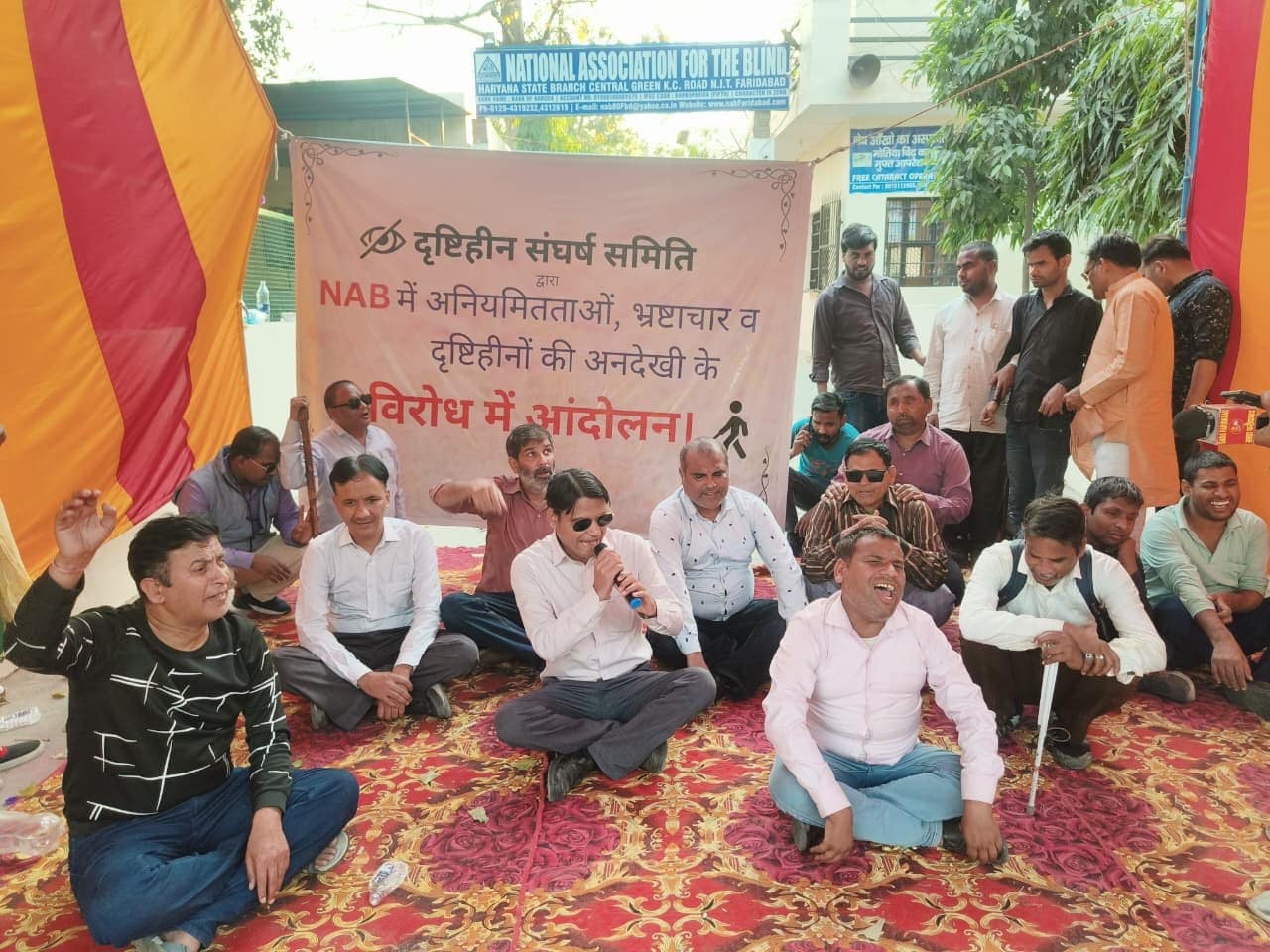 फरीदाबाद। नेशनल एसोसिएशन फॉर द ब्लाइंड(नेब) फरीदाबाद में अनियमितताओं,भ्रष्ट्राचार व दृष्टि हीनों की अनदेखी के विरोघ में दृष्टि हीन समाज द्वारा नेब के मुख्य द्वार पर अनिश्चित कालीन धरना प्रर्दशन शुरू किया गया। आंदोलन समिति के संयोजक हरिंदर मलिक ने बताया कि दृष्टि हीन समाज ने अपनी यह मांग रखी है, जिसमें 1. वर्ष 2021 में दाखिल सभी 109 अर्जीकर्ता जिन्होंने सदस्यता शुल्क जमा करा दिया, उन्हें सदस्यता दे और उनके विवरण तुरंत समिति कार्यालय में पंजीकृत करावे। 2. नेब के अकाउंट्स का जो ऑडिट है वो किसी इंडिपेंडेंट एजेंसी से कराया जाए, ताकि पारदर्शिता सुनिश्चित की जा सके। 3. हेम सिंह यादव का इस्तीफा मंजूर कर उसे नेब से बाहर करें, तब ही नेब उन्नति कर सकता है। 4. नेब में चल रहे अस्पताल का नाम वही किया जाय जो माननीय राज्यपाल के द्वारा उद्घाटन किया गया था, नाम बदलने के दोषियों को नेब से बाहर निकालें। 5. कास्टिक सोडा से ग्रसित लड़कियों को उनके स्वास्थ्य को ठीक रखने के लिए उचित मुआवजा दिया जाए। 6. सभी नए और पुराने सदस्यों की सूची बना कर नेब के सदस्यों की असाधारण बैठक बुला कर वर्तमान कार्यकारिणी समिति को नियमित करावे क्योंकि वर्ष 2024 में 171 सदस्यों में से सिर्फ 91 सदस्यों में ही चुनाव करवा दिए थे। 7. स्कॉलरशिप मेरिट बेस पे दी जाए। 8. क्रिकेट एसोसिएशन को नेब से अलग किया जाए।