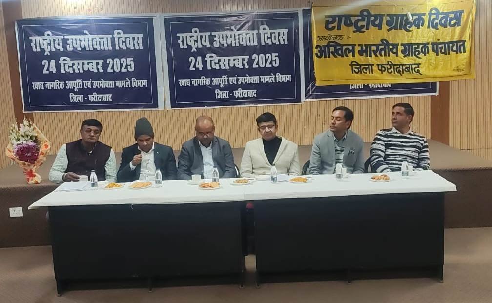 फरीदाबाद, दिसंबर। जिला खाद्य आपूर्ति एवं उपभोक्ता मामले नियंत्रक, फरीदाबाद कार्यालय द्वारा एसडीएम फरीदाबाद अमित कुमार की अध्यक्षता में राष्ट्रीय उपभोक्ता अधिकार दिवस मनाया गया। इस अवसर पर अखिल भारतीय ग्राहक पंचायत, फरीदाबाद के प्रांतीय कोषाध्यक्ष एडवोकेट विकास गुप्ता, सदस्य अखिल भारतीय ग्राहक पंचायत ऋषि शर्मा, निरीक्षक मापतोल विभाग फरीदाबाद अभिमन्यु यादव, सहायक खाद्य नागरिक आपूर्ति एवं उपभोक्ता मामले अधिकारी मनोज कुमार, सहायक खाद्य नागरिक आपूर्ति एवं उपभोक्ता मामले अधिकारी बल्लभगढ़ एवं अजित सिंह सहायक खाद्य नागरिक आपूर्ति एवं उपभोक्ता मामले अधिकारी, ओल्ड फरीदाबाद उपस्थित थे।