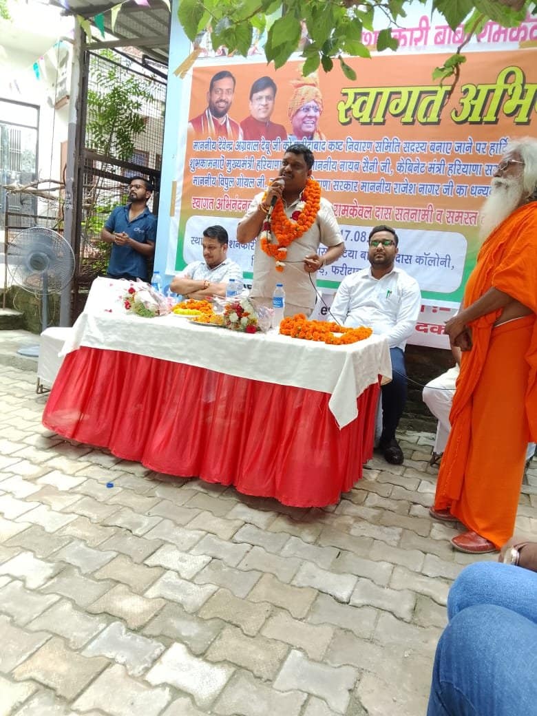 फरीदाबाद कष्ट निवारण समिति सदस्य देवेंद अग्रवाल का बाबा सूरदास कॉलोनी में हुआ अभिनंदन