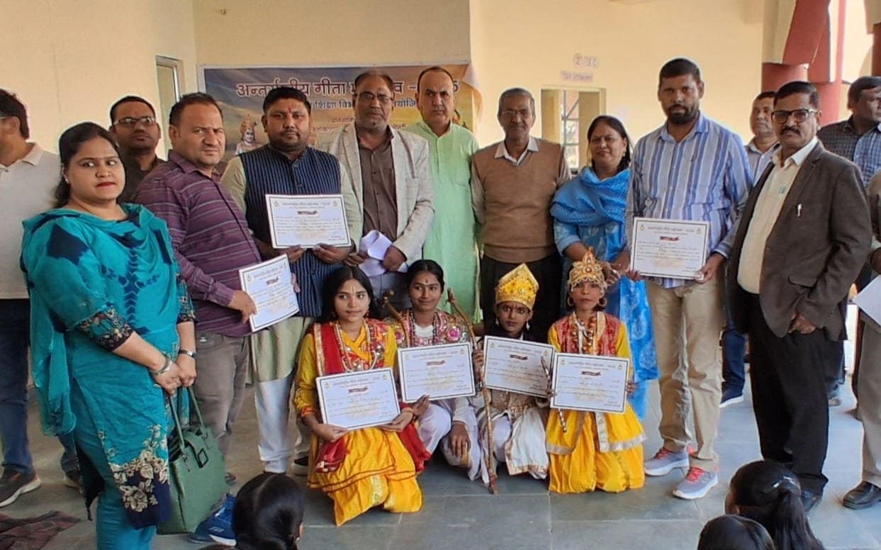 बल्लभगढ़ | राजकीय वरिष्ठ माध्यमिक विद्यालय सेक्टर 03 के प्रांगण में बल्लभगढ़ खंड स्तरीय अंतरराष्ट्रीय गीता महोत्सव की प्रतियोगिता का आयोजन किया गया। जिसका शुभारंभ खंड शिक्षा अधिकारी द्वारा नियुक्त नोडल अधिकारी प्राचार्य डॉ जयप्रकाश वैष्णव व मुख्याध्यापक रविकांत गुप्ता एवं प्रतियोगिता प्रभारी समाजसेवी शिक्षाविद सन्तसिहं हुड्डा व रघु वत्स, राजकुमार ने किया। जिसमें बल्लभगढ़ खण्ड के सभी राजकीय व गैर राजकीय विद्यालयों के छात्र/छात्राओं ने श्लोकोच्चारण, निबंध लेखन, भाषण, संवाद, प्रश्नोत्तरी व पेंटिंग आदि विभिन्न प्रतियोगिताओं के माध्यम से अपनी प्रतिभा को दिखाया। प्रतियोगिता का आयोजन कक्षा छठी से आठवीं व कक्षा नौंवी से बारहवीं के विद्यार्थियों को दो समूह में बांट कर कराई गई।