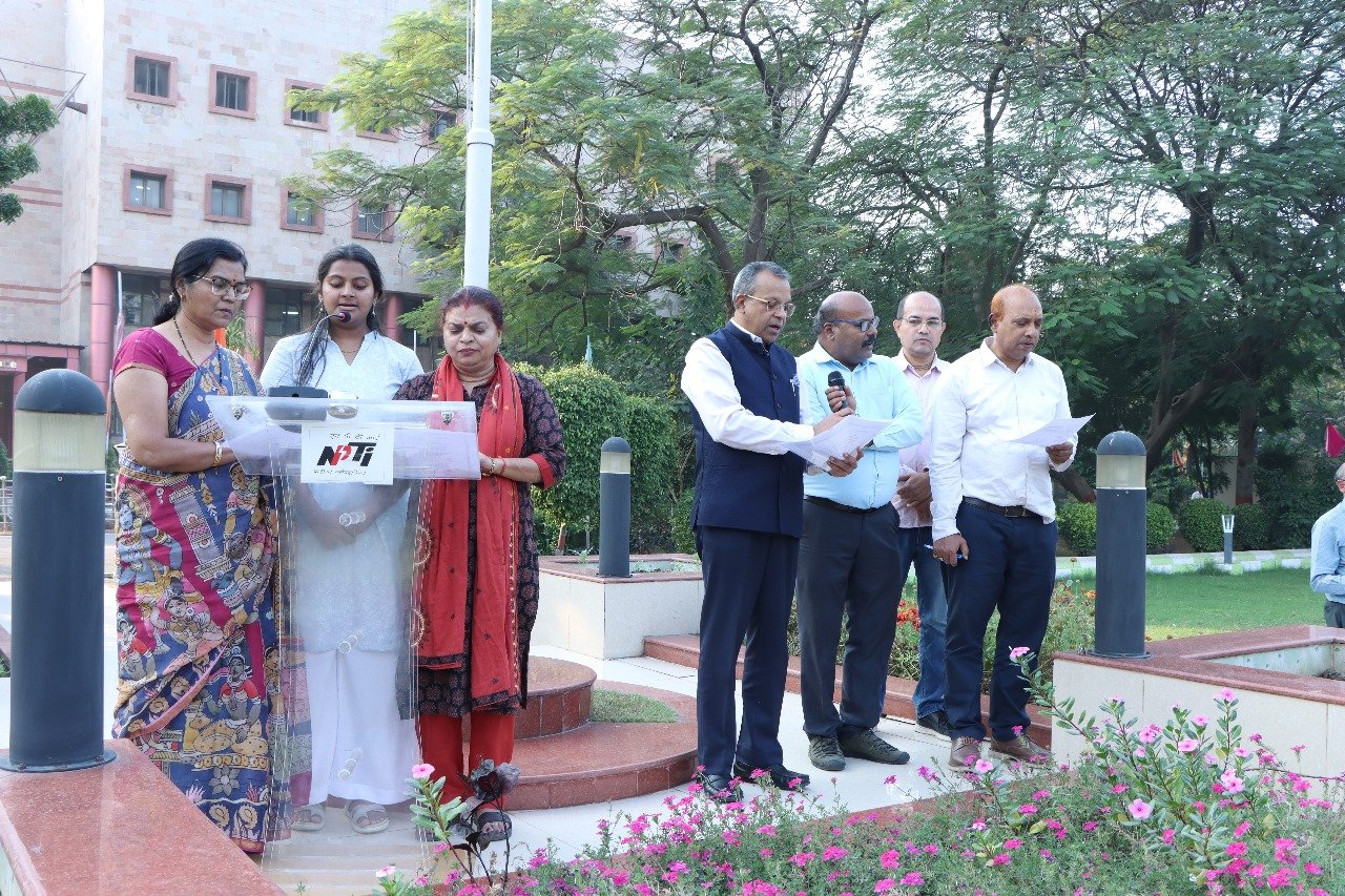 फरीदाबाद। राष्ट्रीय गीत “वंदे मातरम” के 150 वर्ष पूरे होने के उपलक्ष्य में 7 नवंबर 2025 को सेक्टर-33 स्थित विद्युत मंत्रालय के राष्ट्रीय विद्युत प्रशिक्षण संस्थान (एनपीटीआई) में नए महानिदेशक श्री हेमंत जैन ने सभी अधिकारी, कर्मचारी और विद्यार्थियों के साथ मिलकर वदें मातरम गीत गाया। इस अवसर पर एनपीटीआई के प्रधान निदेशक डॉ एस सेलवम, प्रधान निदेशक डॉ. इंदु महेश्वरी, निदेशक मनोज कुमार झा, दुर्गाशंकर साहू और वत्सला शर्मा सहित उप निदेशक और सह निदेशकगणों सहित सैंकडों कर्मचारी एवं विद्यार्थी माजूद रहे। एनपीटीआई में राष्ट्रीय गीत वंदे मातरम के 150 वर्ष पूरे होने के उपलक्ष्य में पूरे साल चार चरणों में उत्सव मनाया जाएगा जोकि 07 नवंबर 2026 में सम्पन्न होगा।