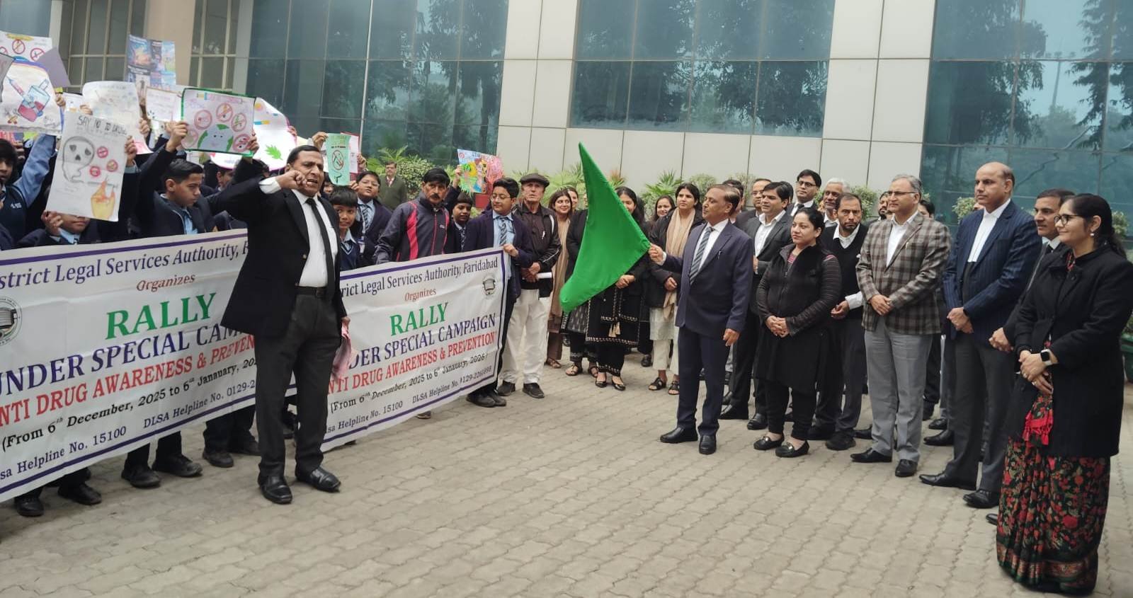 एंटी-ड्रग जागरूकता रैली को जिला एवं सत्र न्यायाधीश एवं अध्यक्ष, जिला विधिक सेवा प्राधिकरण संदीप गर्ग द्वारा हरी झंडी दिखाकर रवाना किया गया। इस अवसर पर माननीय अतिरिक्त सत्र न्यायाधीशगण एवं अन्य न्यायिक अधिकारीगण— सुधीर जीवन, पुरुषोत्तम कुमार, सुरेंद्र कुमार, अजय शर्मा, हेम राज मित्तल, ज्योति लांबा, अभिषेक फूटेला, राजेश कुमार यादव, संदीप यादव, सौरभ गोसाईं (प्रधान न्यायाधीश, पारिवारिक न्यायालय), विजय जेम्स, विनीत सपरा, जितेंद्र सिंह (एसीजेएम), उपेंद्र सिंह (सीजेएम) सहित फरीदाबाद न्यायालय के अन्य न्यायिक अधिकारी उपस्थित रहे।