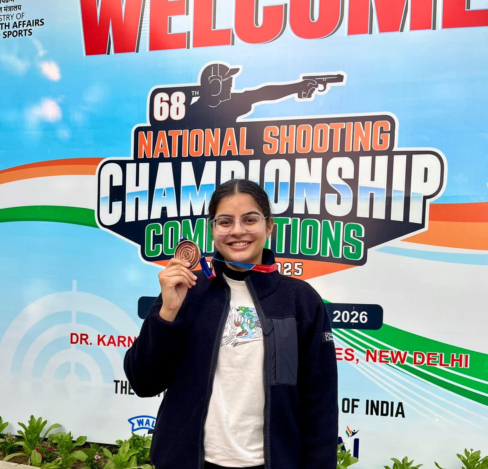 रेवाड़ी \ नेशनल राइफल एसोसिएशन ऑफ इंडिया द्वारा आयोजित 68वीं राष्ट्रीय निशानेबाजी प्रतियोगिता का आयोजन डॉ. कर्णी सिंह शूटिंग रेंज, नई दिल्ली में किया जा रहा है। इस प्रतिष्ठित राष्ट्रीय प्रतियोगिता में देशभर के शीर्ष निशानेबाज भाग ले रहे हैं। रेवाड़ी जिले के कुतुबपुर निवासी खिलाड़ी सुरभि राव ने शानदार प्रदर्शन करते हुए 10 मीटर ऐयर पिस्टल प्रतियोगिता में कांस्य पदक अपने नाम किया। सुरभि की इस उपलब्धि से न केवल उनके परिवार बल्कि पूरे क्षेत्र में हर्ष और गर्व का माहौल है। इस प्रतियोगिता में पूरे देशभर से हजारों प्रतिभागियों ने भाग लिया।